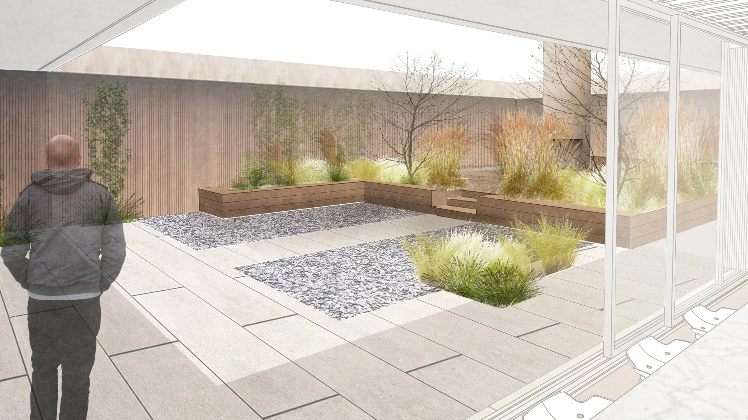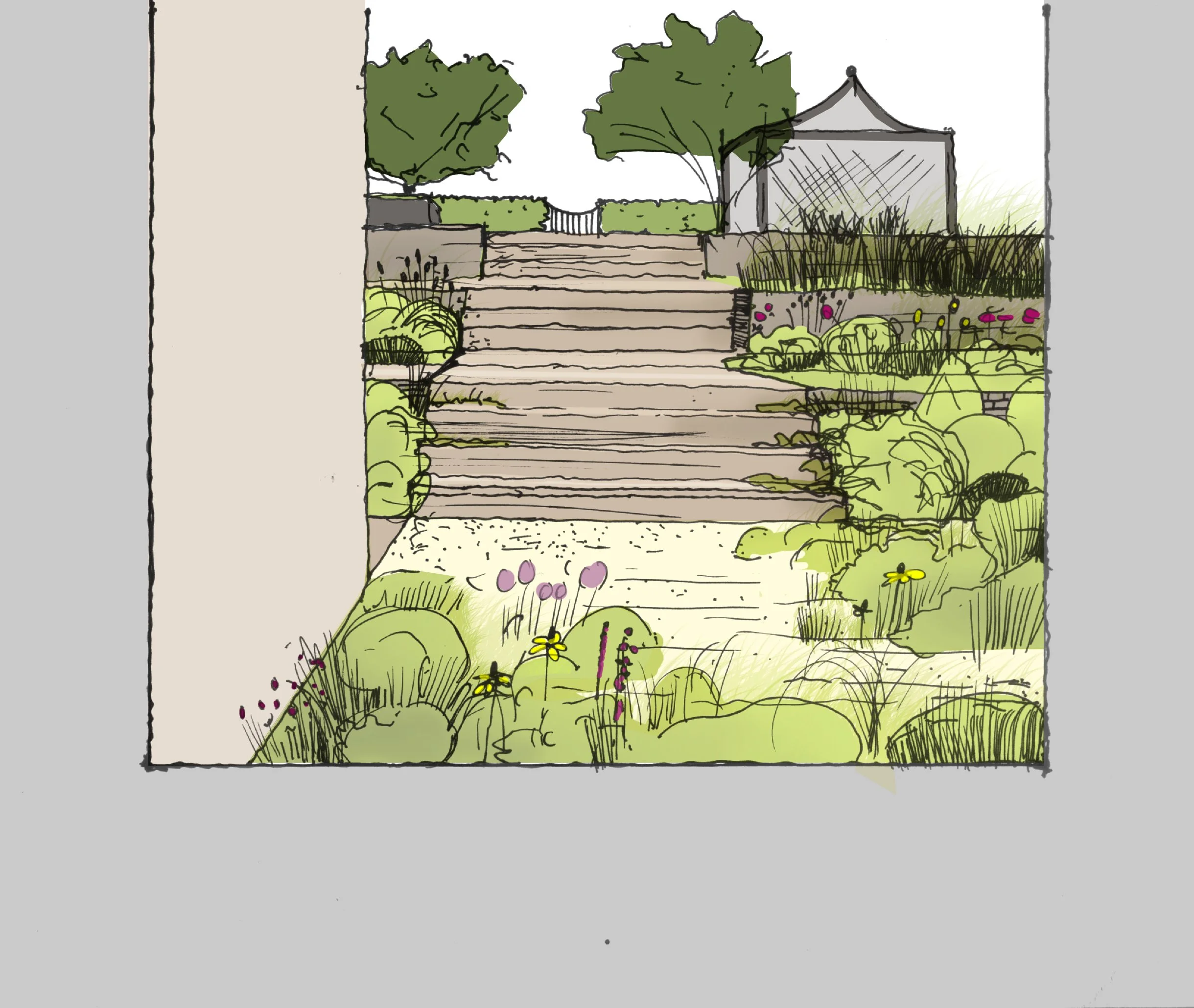 To help you visualise what your garden will be like, I will produce sketches and sometimes models for each area.